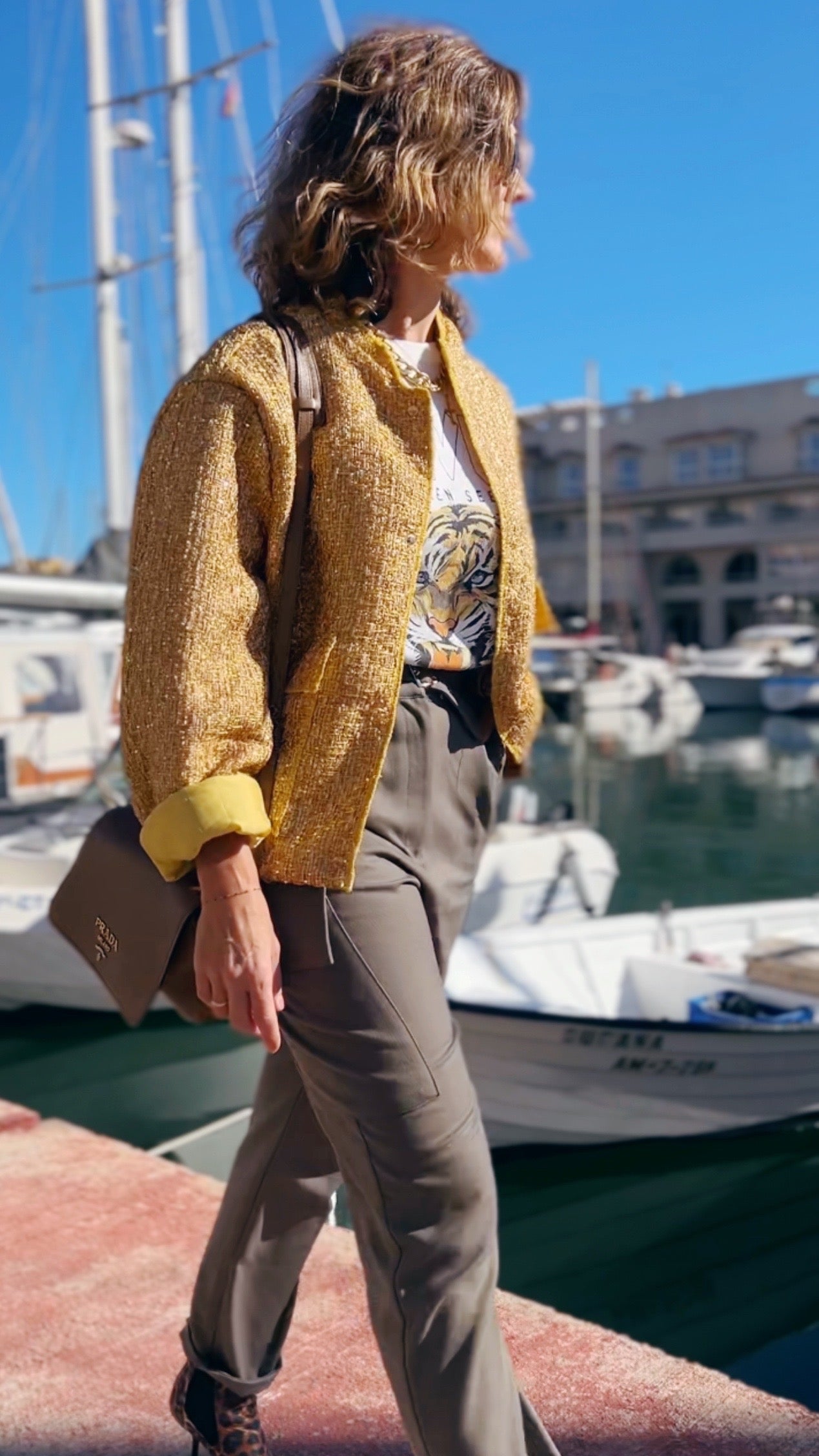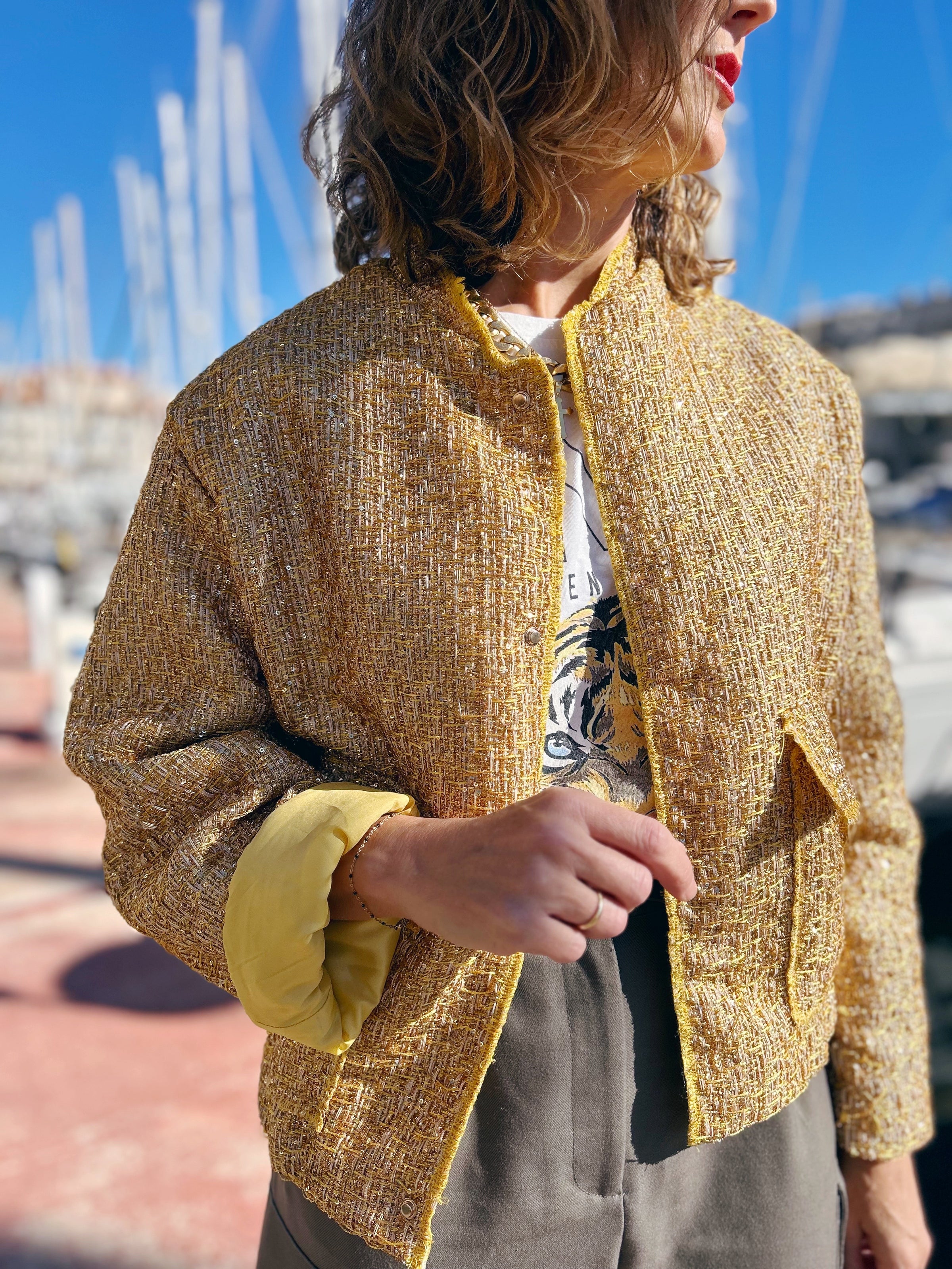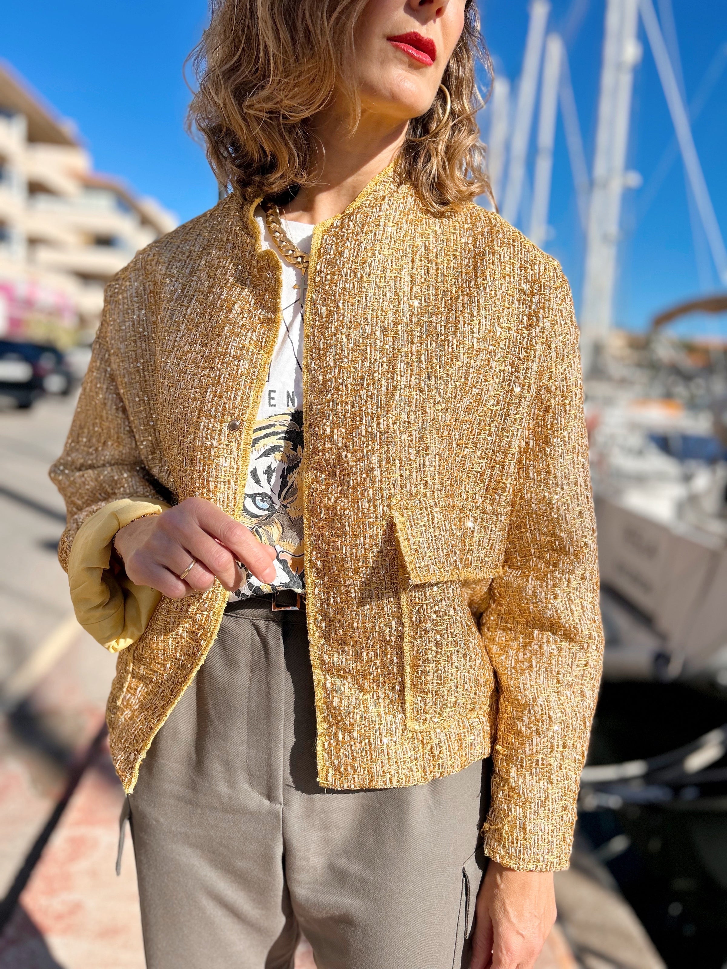 Detalle de aplicación de hilo metalizado y lentejuelas
