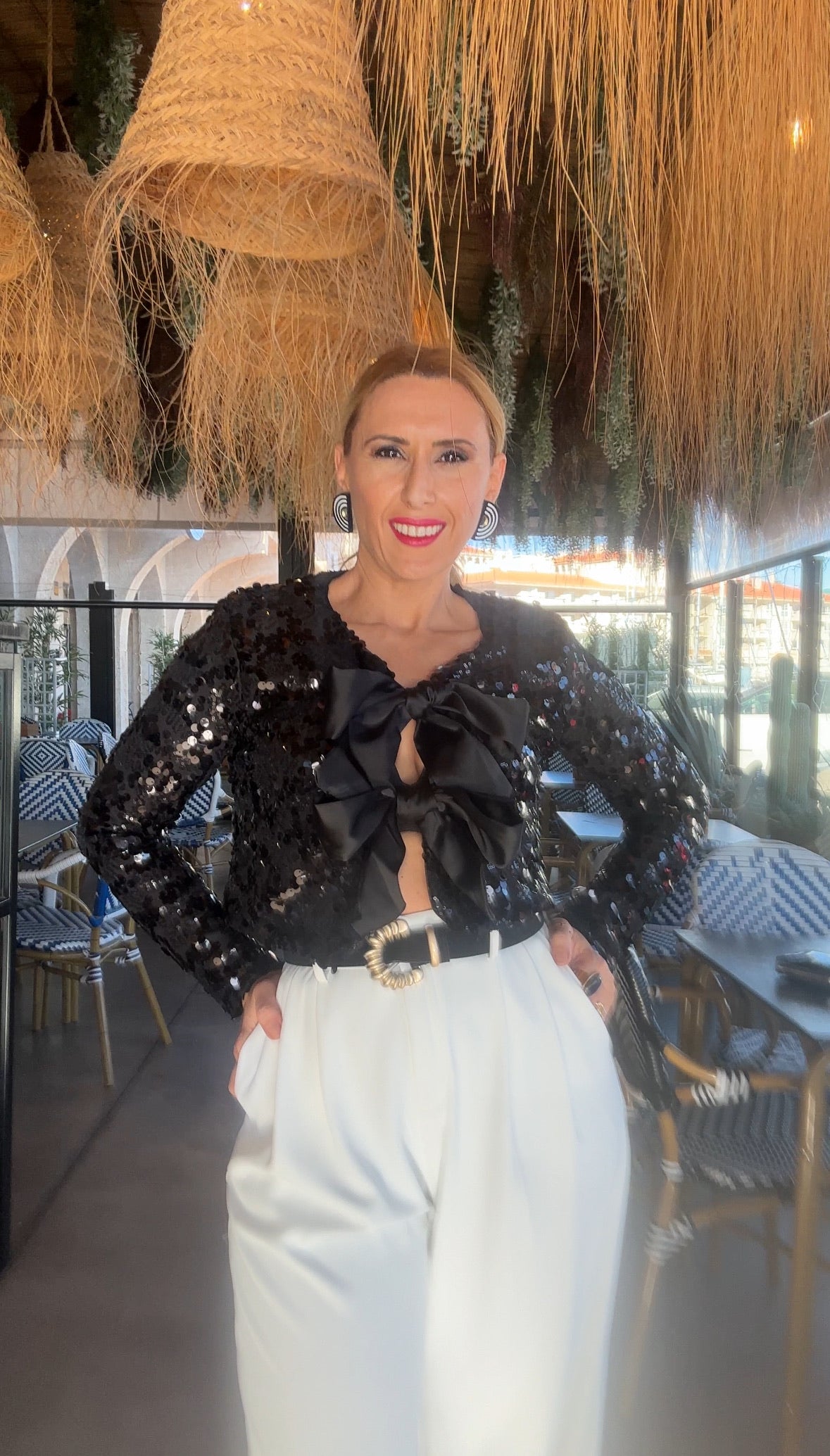 CHAQUETA LENTEJUELAS LAZO NEGRA