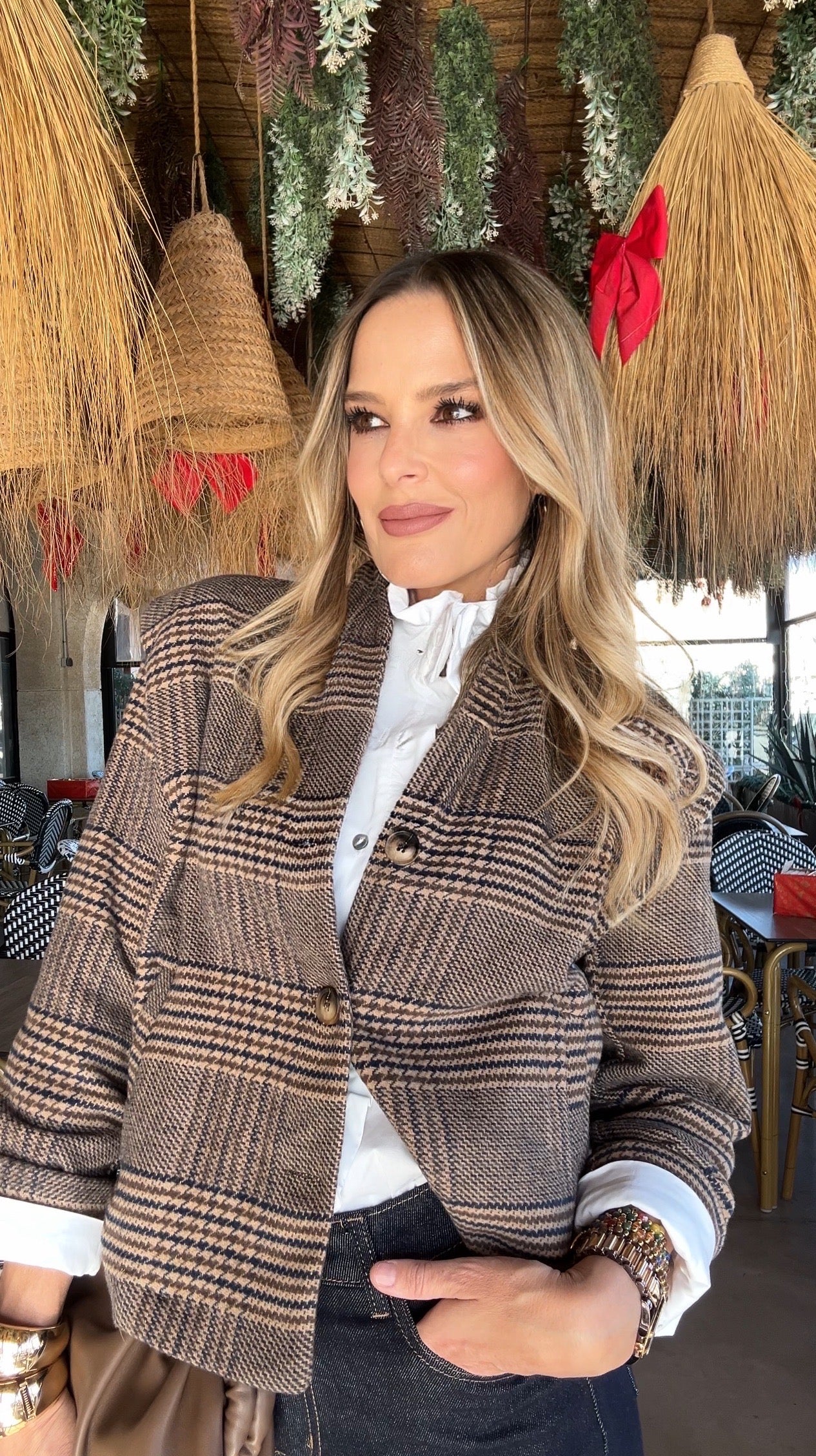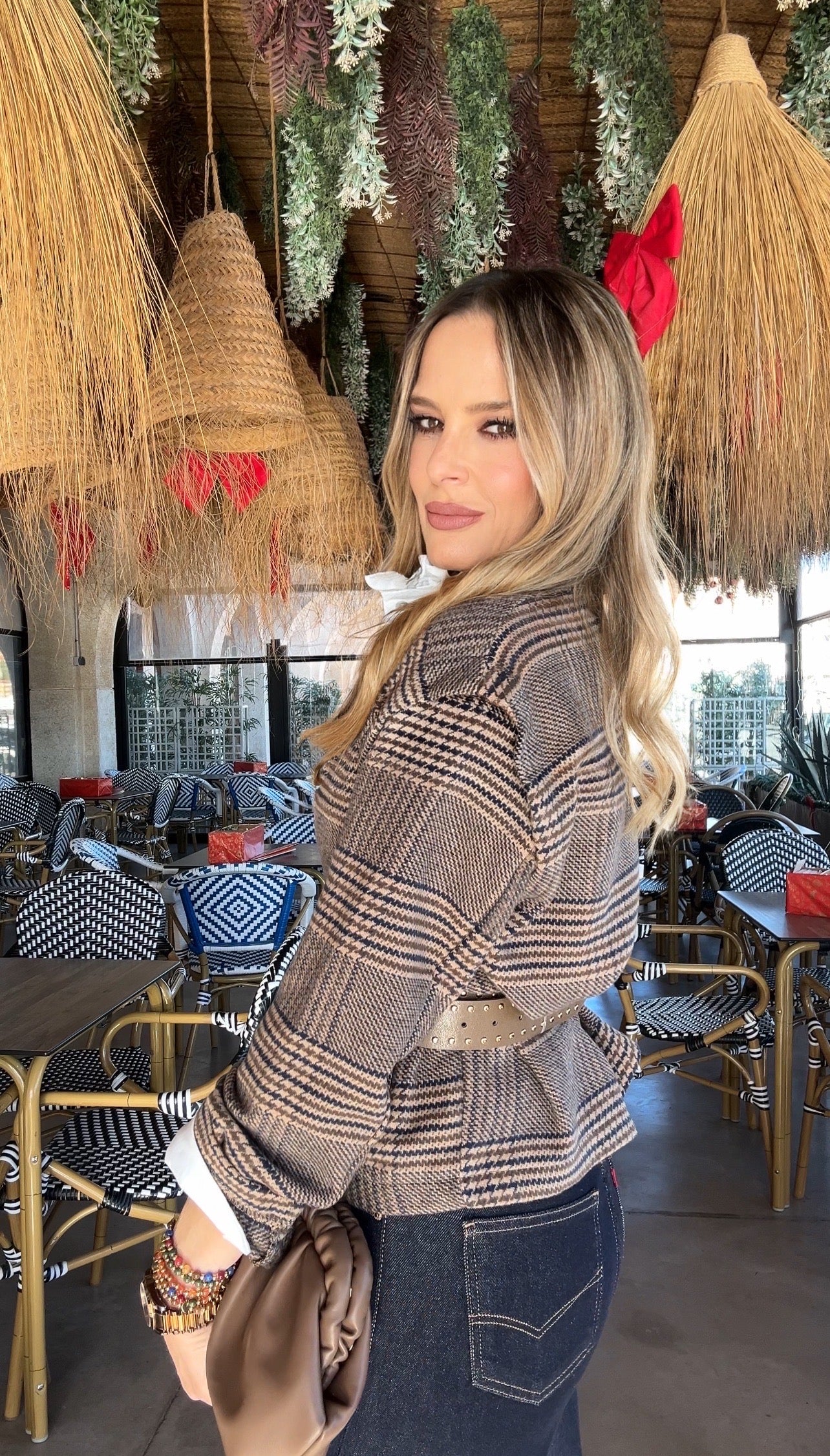 CHAQUETA PATA GALLO AZUL Y CAMEL