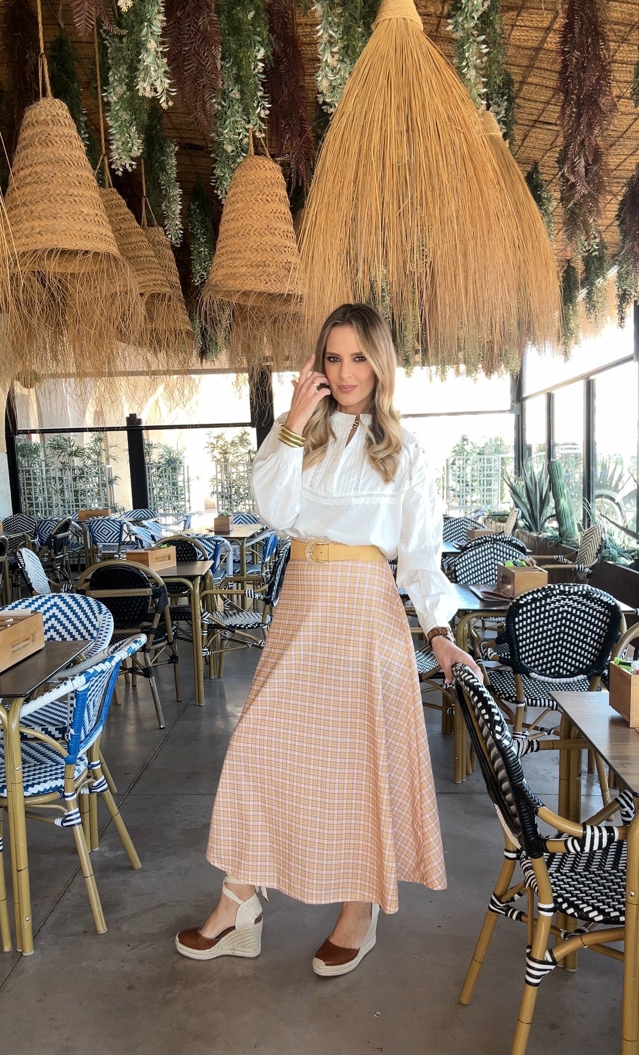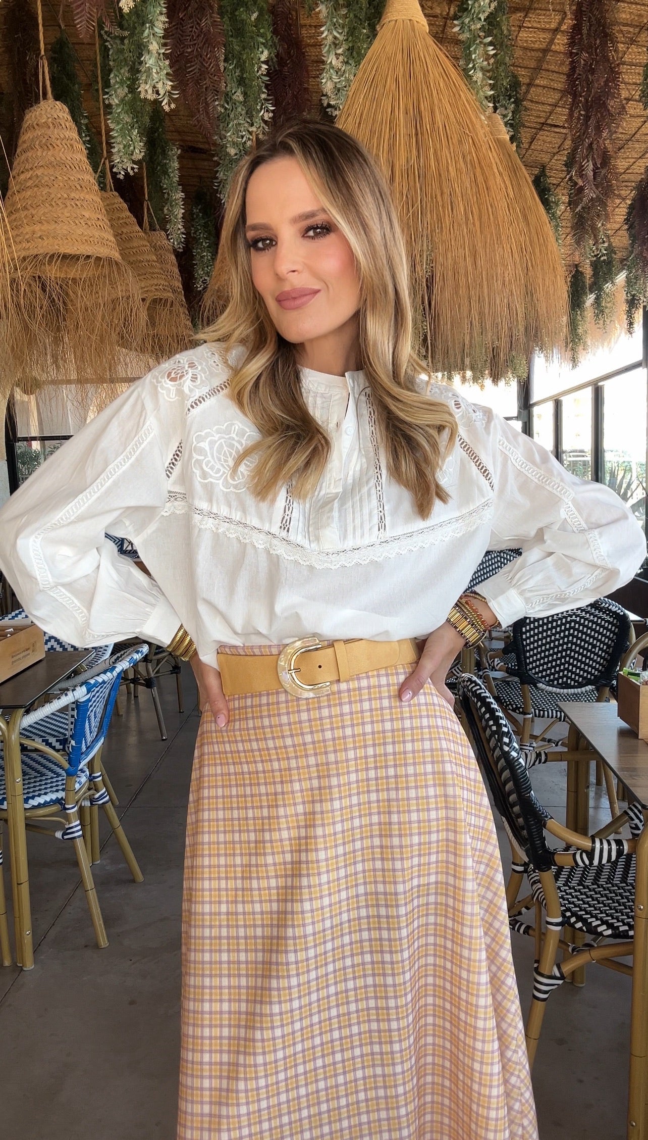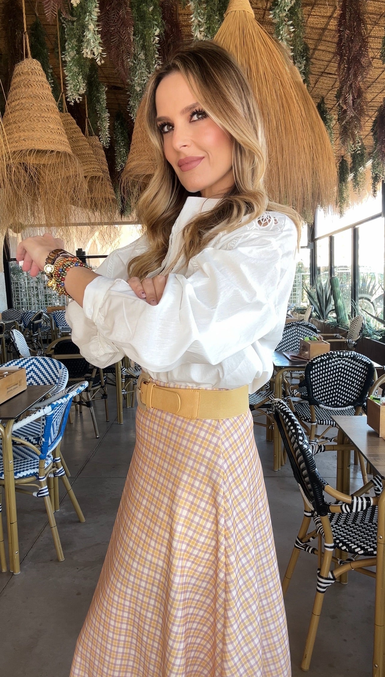 FALDA VUELO CUADROS AMARILLO Y LILA