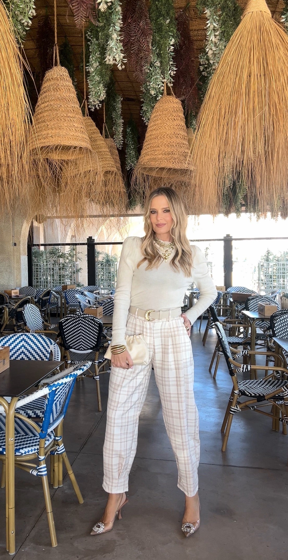 PANTALON BOMBACHO CUADROS BEIGE