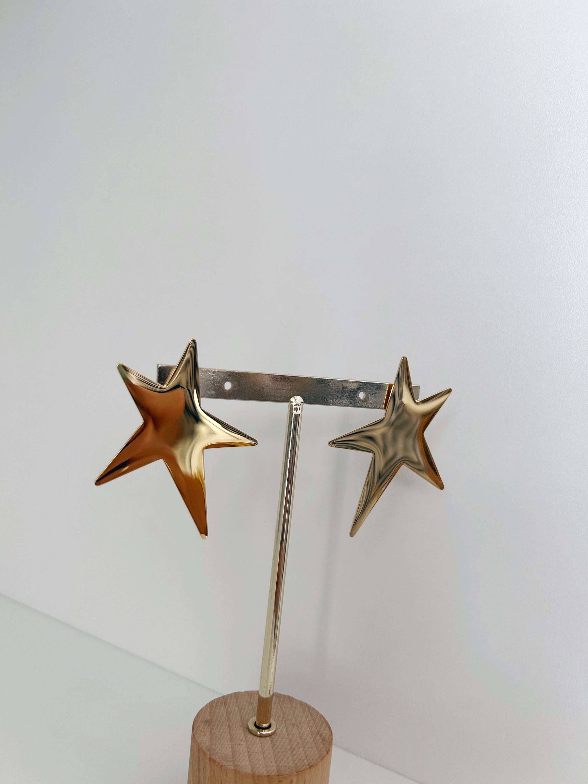 Pendiente dorado con forma de estrella. Cierre con tuerca.